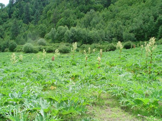【栽培技术】 大黄用种子繁殖,直播即可。选好地施肥翻地整地做畦后,条播,按行距30-35厘米开浅沟,沟深2厘米左右,均匀撒种后盖土浇水。苗高5-6厘米时间苗,株距15-20厘米。注意苗期除草。干旱可浇水。 几乎没有病虫害。 用种子繁殖,也可用子芽(母株根茎上的芽)繁殖。种子繁殖:大黄品种易杂交变异,应选品种较纯的三年生植株作 种株,7月中、下旬待种子大部变黑褐色时,连茎割回,阴干,脱粒。备用。用育苗移栽、直播法两种。分春播和秋播,一般以秋播为好。育苗,可条播或撒播。条 播者横向开沟,沟距25~30cm,播[阅读全文]